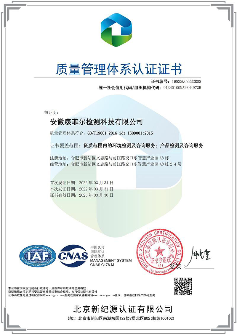 康菲爾檢測科技,組建于2016年,注冊成立于2018年,注冊資金2000萬,上市公司(股票代碼:688659)全資子公司。“雙C”(CMA&CNAS)認證認可實驗室、高新技術企業、科技型中小企業,通過了三標一體化體系認證,是環境保護領域的綜合型科技服務商。